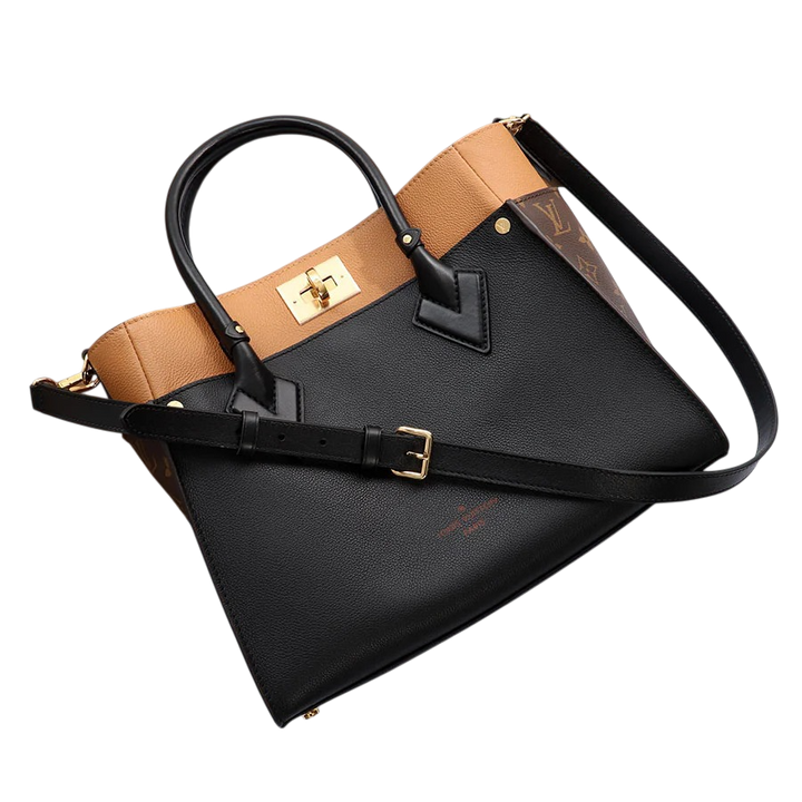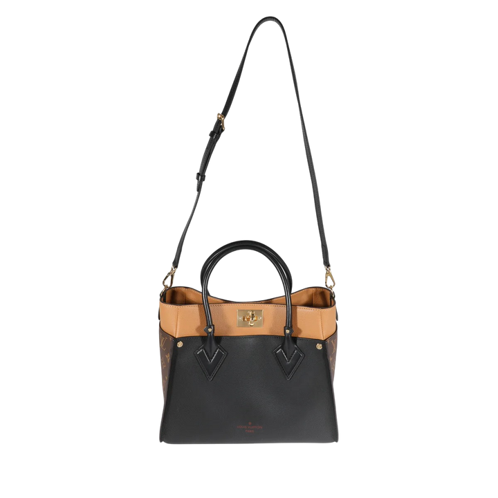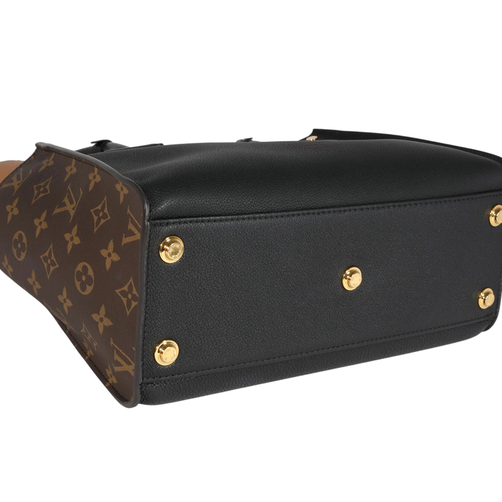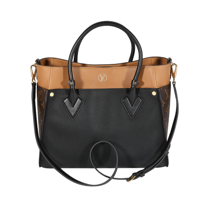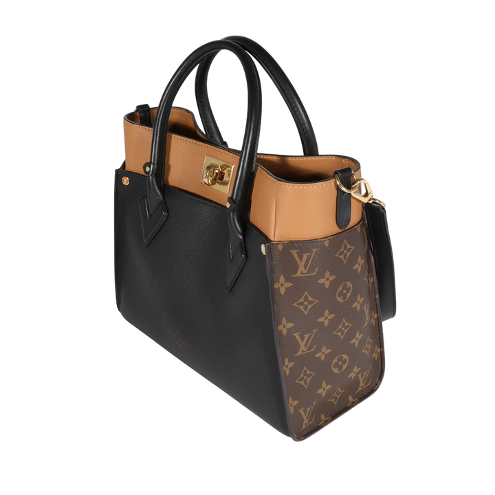 The (Pre Loved ) Women’s Louis Vuitton On My Side Black Calfskin Handbag by Luxcarrys defines modern sophistication with its timeless fusion of grained calfskin leather and iconic monogram-coated canvas. Crafted with exquisite attention to detail, it features rolled leather top handles and a detachable, adjustable shoulder strap, offering versatile carrying options handheld, shoulder, or crossbody.