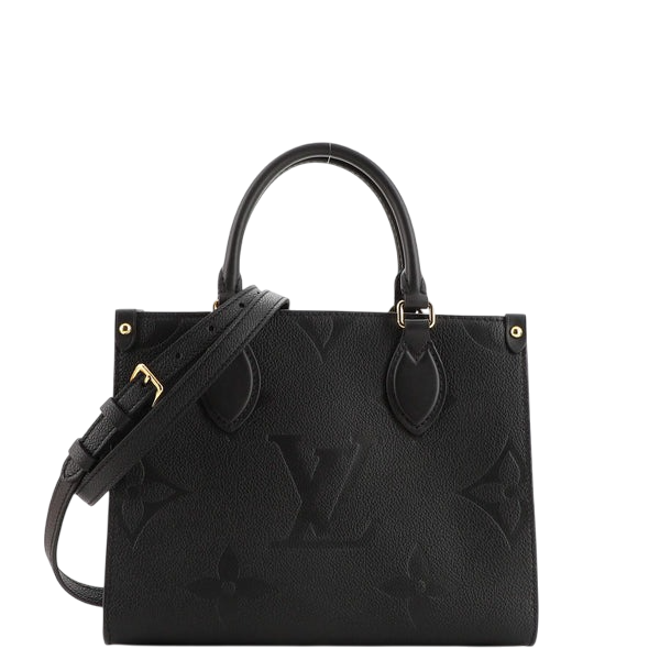 The Pre-owned Women’s Louis Vuitton On The Go PM Black Monogram Empreinte Handbag embodies timeless sophistication in a structured yet compact silhouette. Crafted from luxurious embossed Monogram Empreinte leather, it reflects the Maison’s refined craftsmanship and Parisian heritage.