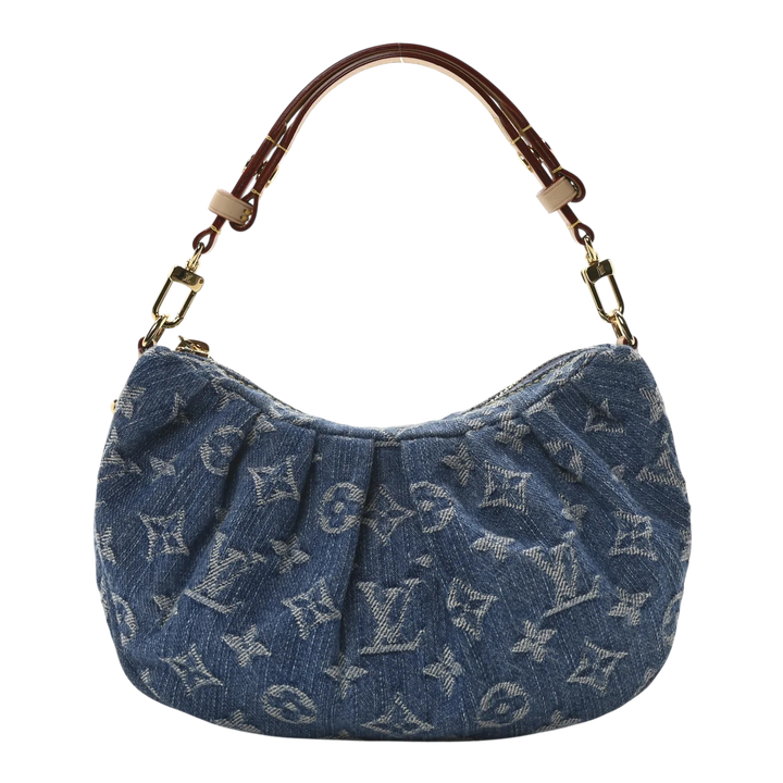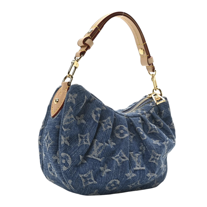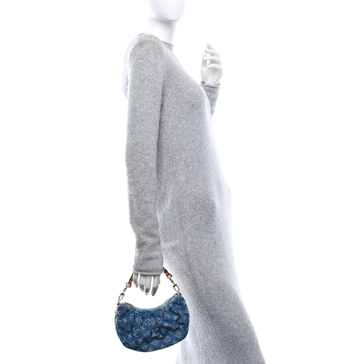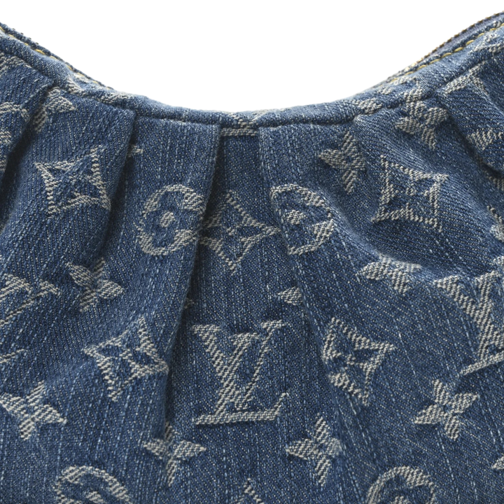 The pleated Monogram Denim pattern adds a chic texture, complemented by light gold-toned hardware for a refined finish. Compact yet functional, it offers just enough room for your smartphone, wallet, earphones, and keys, making it ideal for both day and evening wear.
